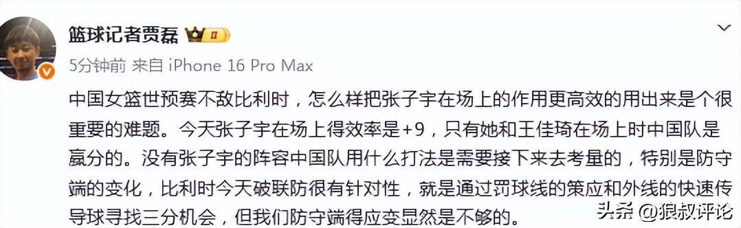 篮球记者贾磊发文点评: